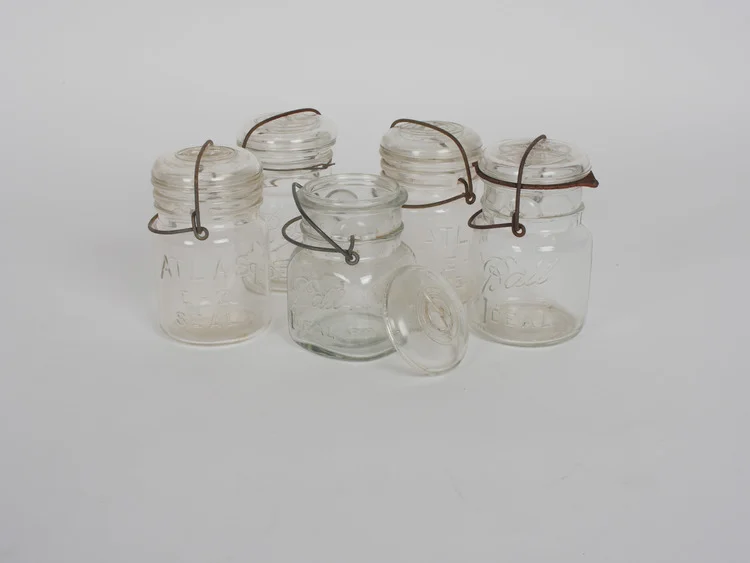 Set of three classic glass lightning jars by Atlas and Ball. These jars date back to at least the early-60's and possibly sooner. Perfect for lighting, hanging, display, or florals.